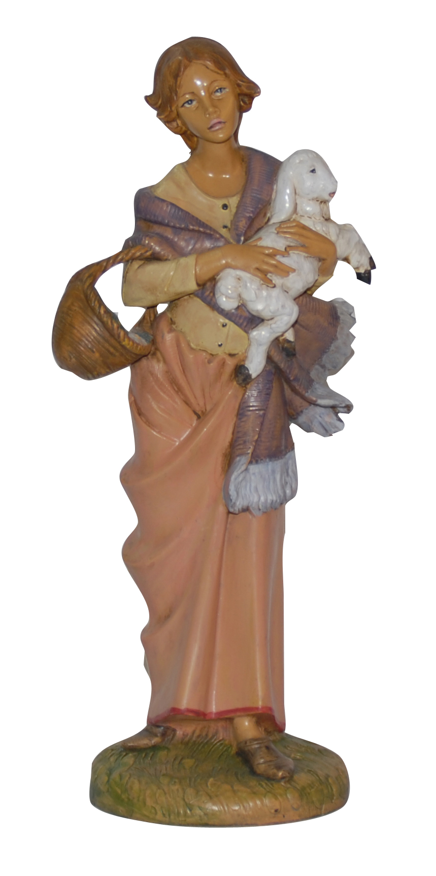 Donna con pecora in stile classico adatto al presepe di dimensioni 30 cm, dipinto a mano.