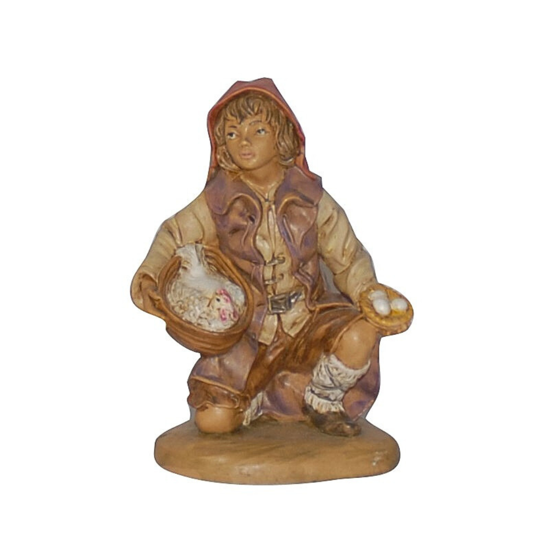 Pastore con gallina adatto al presepe di dimensioni 13 cm, dipinto a mano.