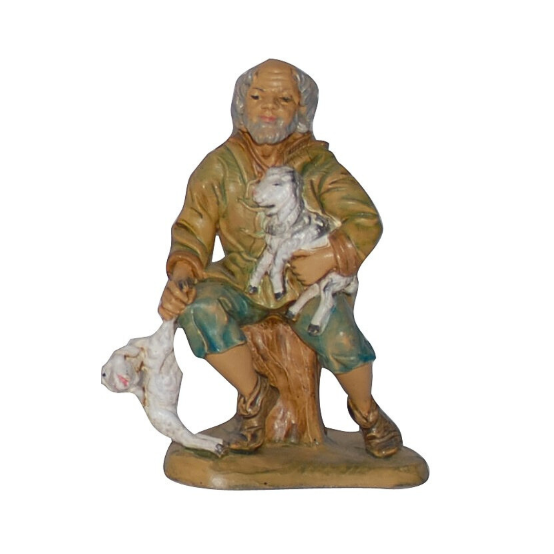 Pastore con pecore adatto al presepe di dimensioni 13 cm, dipinto a mano.