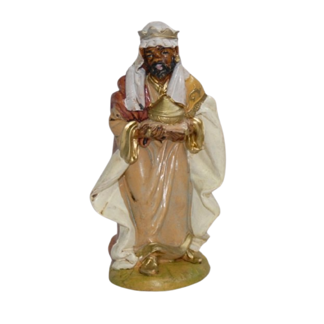 Re Magio moro adatto al presepe cm. 13, in stile classico, dipinto a mano.
