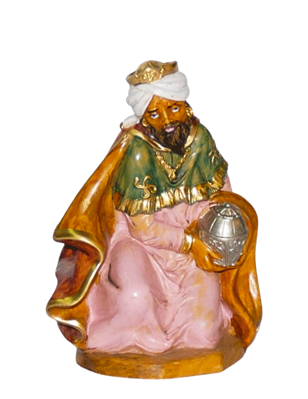 Re Magio mulatto adatto a Presepe cm.16, in stile classico, dipinto a mano.