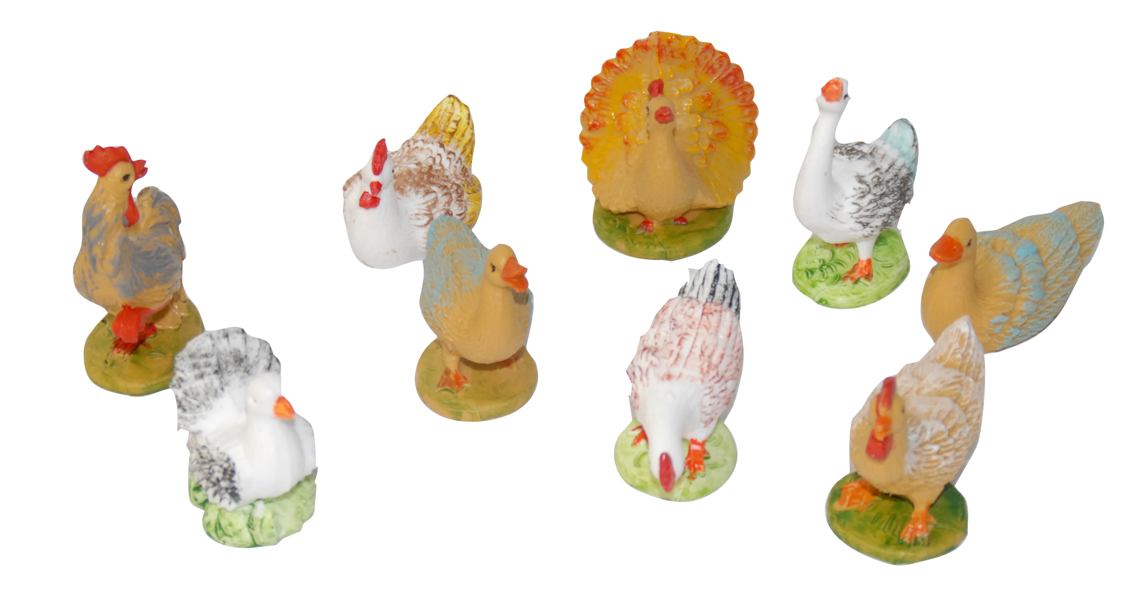 Set animali da cortile assortiti adatti a Presepe da 10/13 cm.