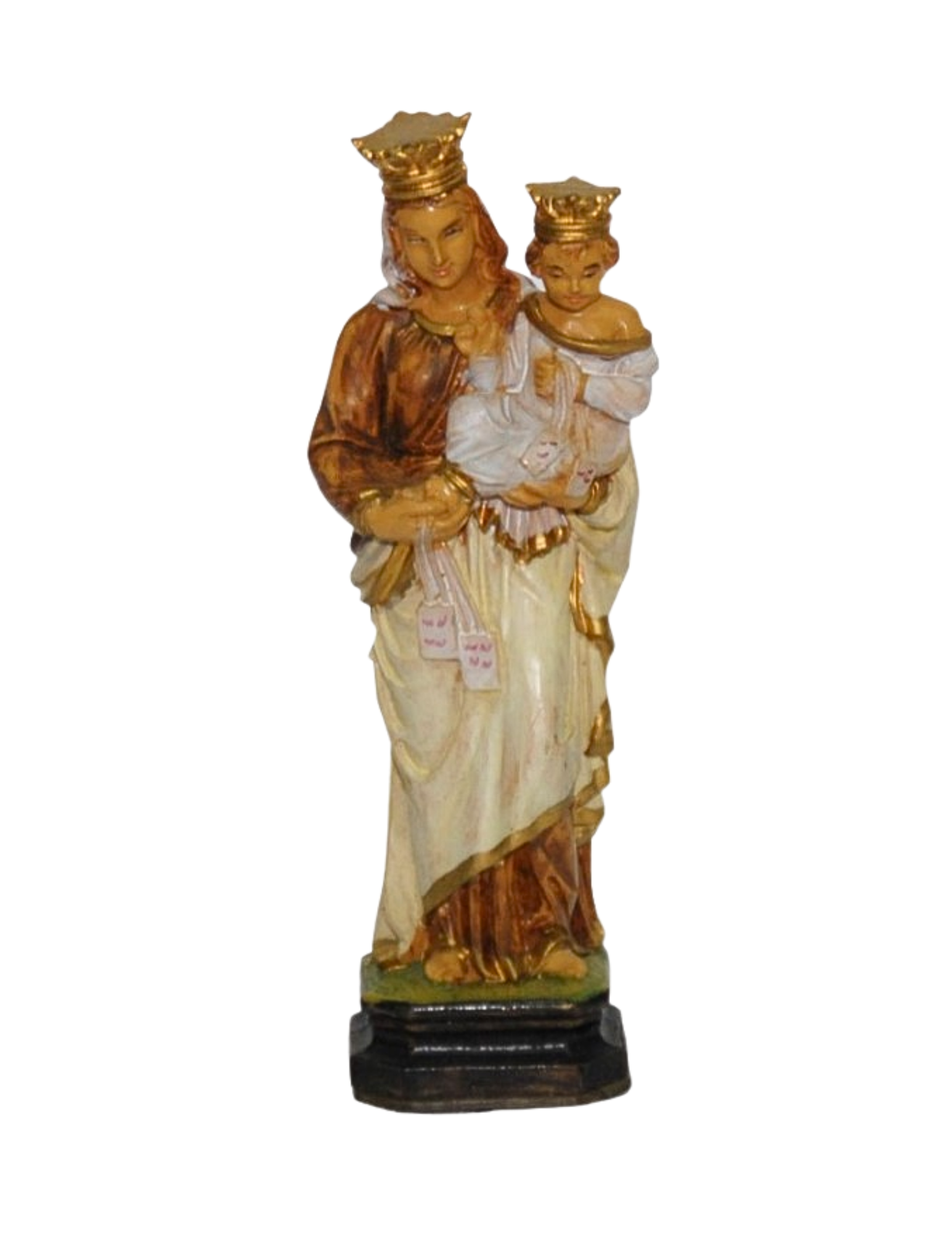 Statua della Madonna del Carmine di altezza di 15 cm. realizzata a mano da maestri figurinai, curata nei dettagli con devozione e maestria artigianale. Un’opera unica che unisce tradizione, fede e arte.