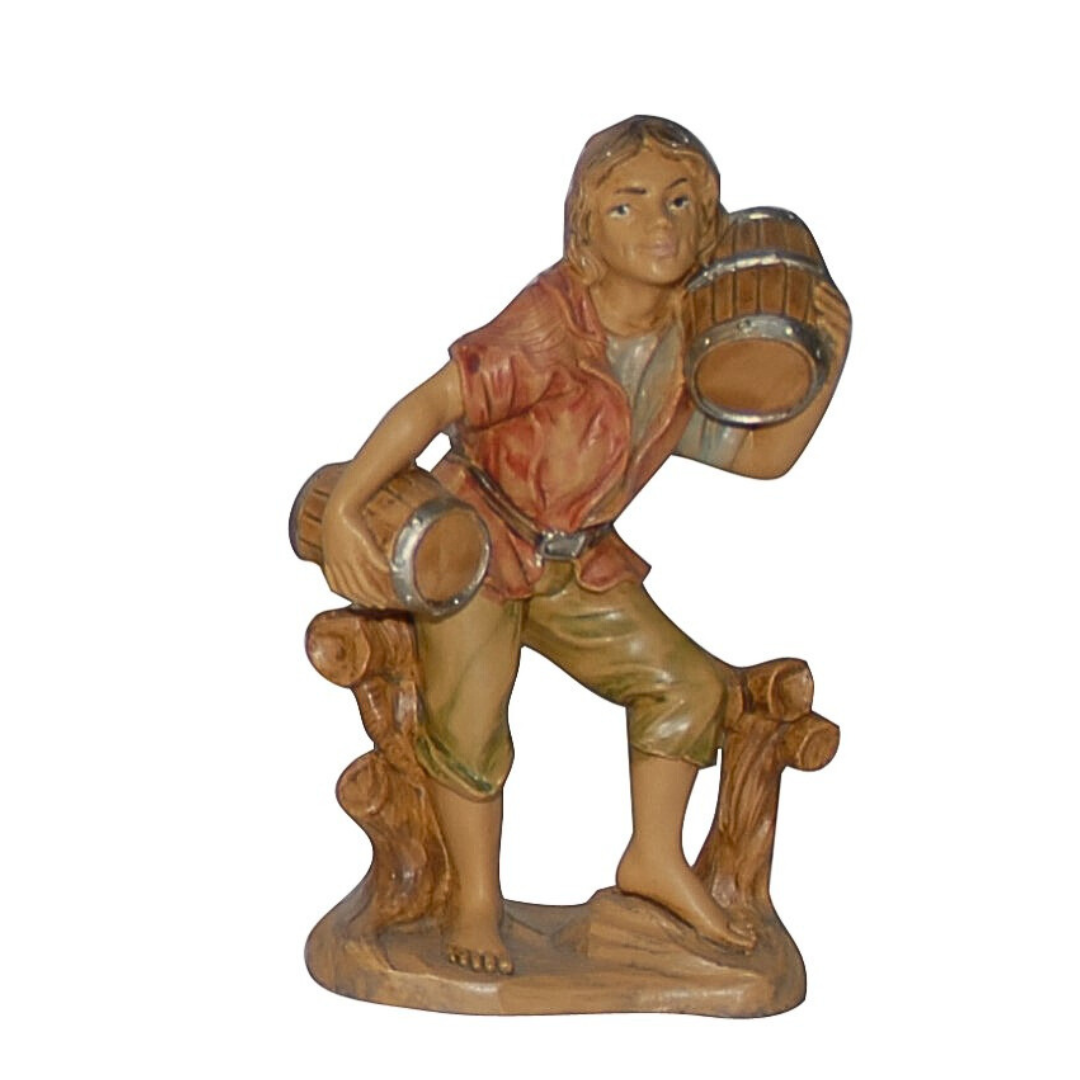 Statuina con botti adatta al presepe di dimensioni 13 cm, dipinto a mano.