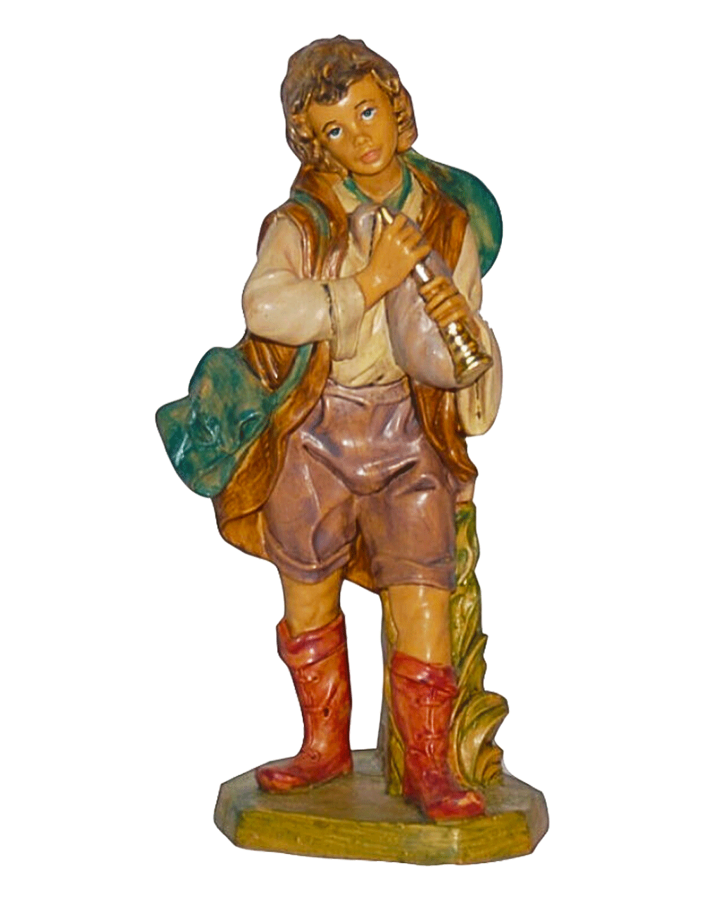 Statuina con piffero adatta al presepe di dimensioni 16 cm, dipinto a mano.