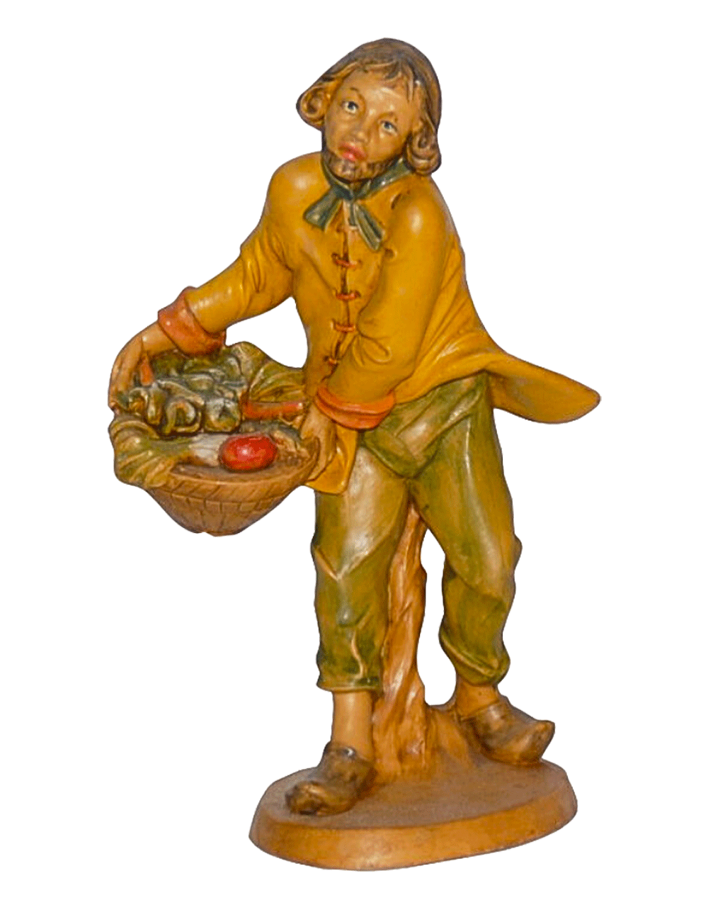 Statuina con verdura adatta al presepe di dimensioni 16 cm, dipinto a mano.