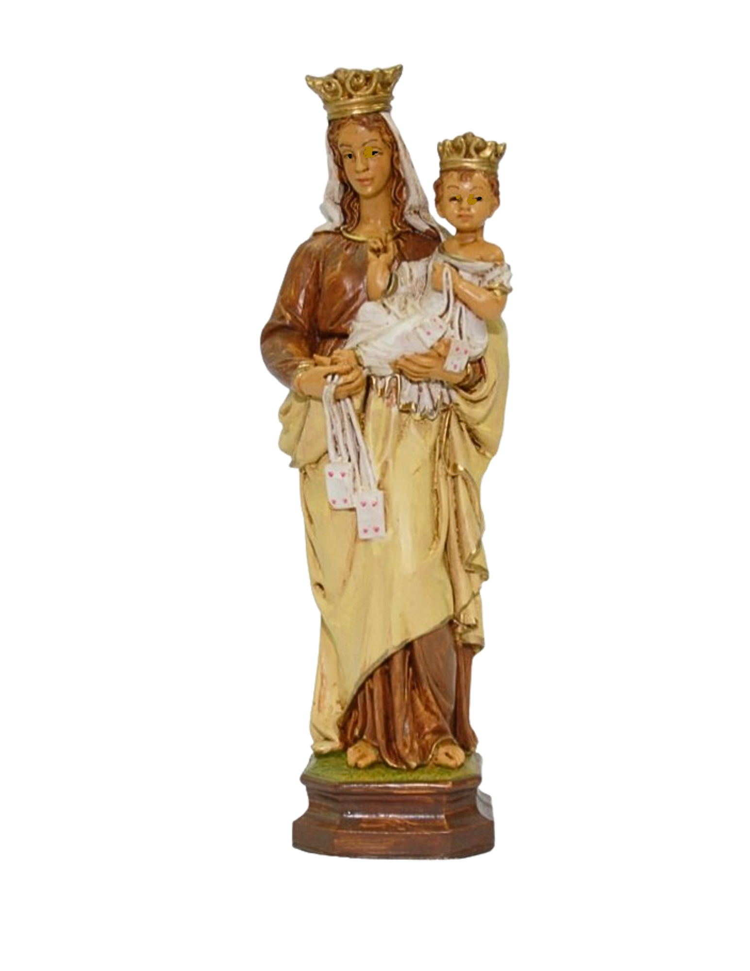 Statua della Madonna del Carmine di altezza di 25 cm. realizzata a mano da maestri figurinai, curata nei dettagli con devozione e maestria artigianale. Un’opera unica che unisce tradizione, fede e arte.