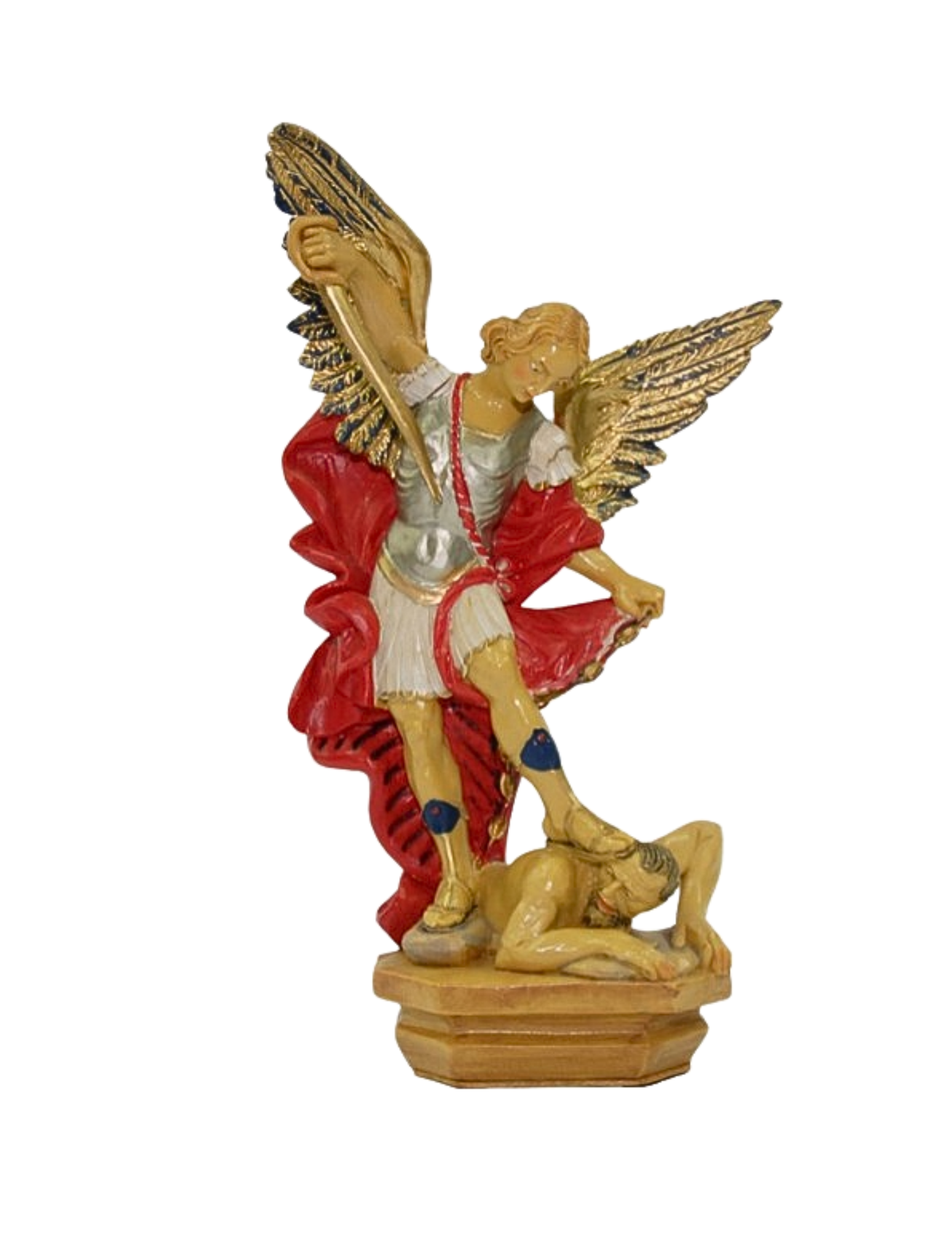 Statua di San Michele Arcangelo di altezza di 25 cm. realizzata a mano da maestri figurinai, curata nei dettagli con devozione e maestria artigianale. Un’opera unica che unisce tradizione, fede e arte.