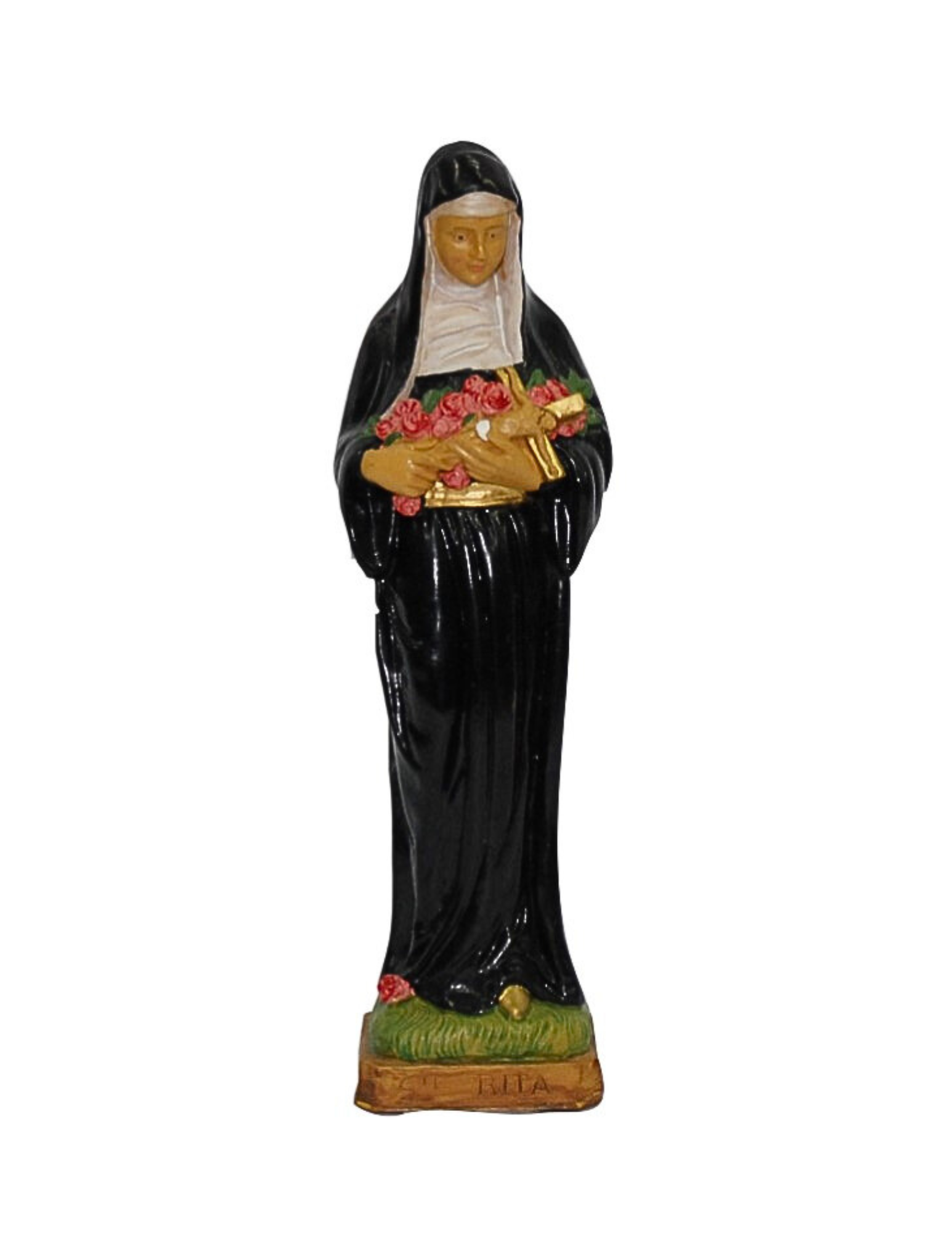 Statua di Santa Rita di altezza di 30 cm. realizzata a mano da maestri figurinai, curata nei dettagli con devozione e maestria artigianale. Un’opera unica che unisce tradizione, fede e arte.