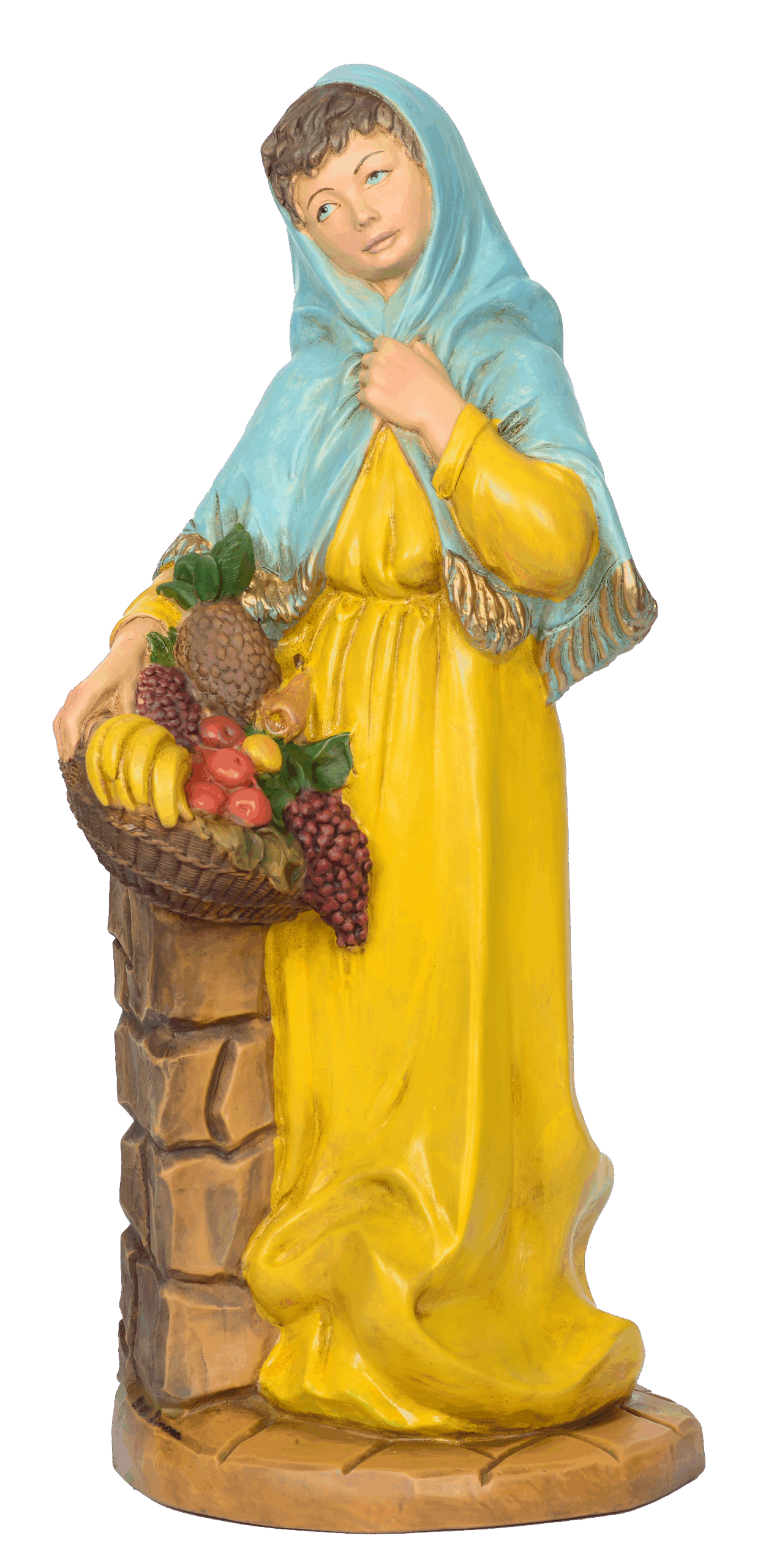 Statuina con frutta adatta al presepe di dimensioni 45 cm, dipinto a mano.