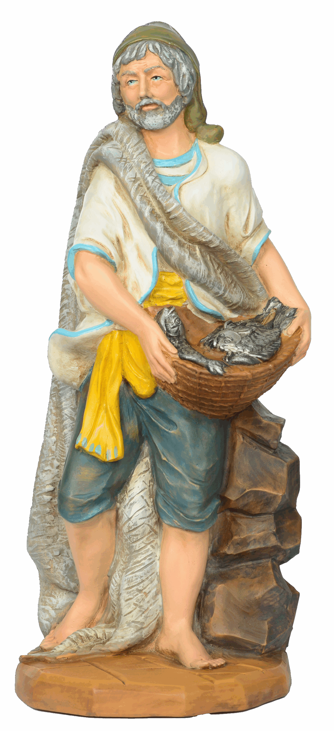 Statuina con pesci adatta al presepe di dimensioni 45 cm, dipinto a mano.