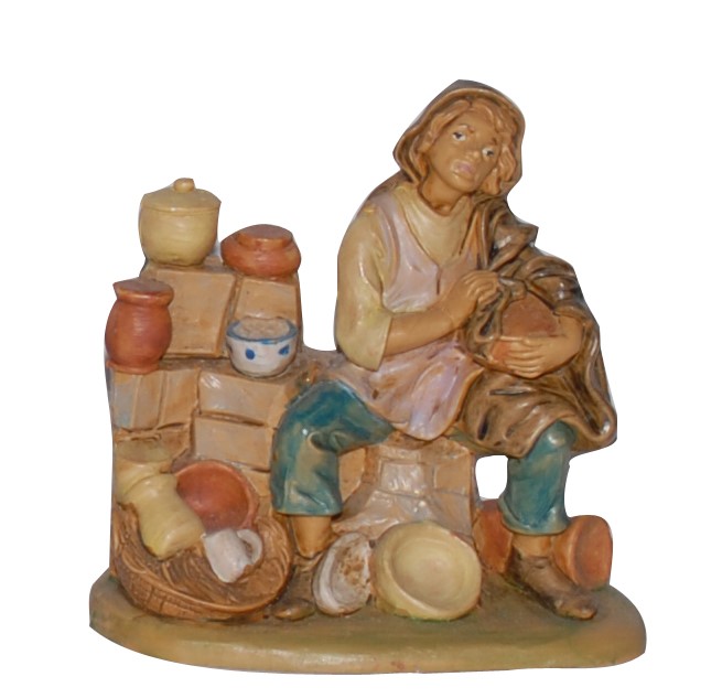 Statuina vasaio adatta al presepe di dimensioni 10 cm, dipinto a mano.