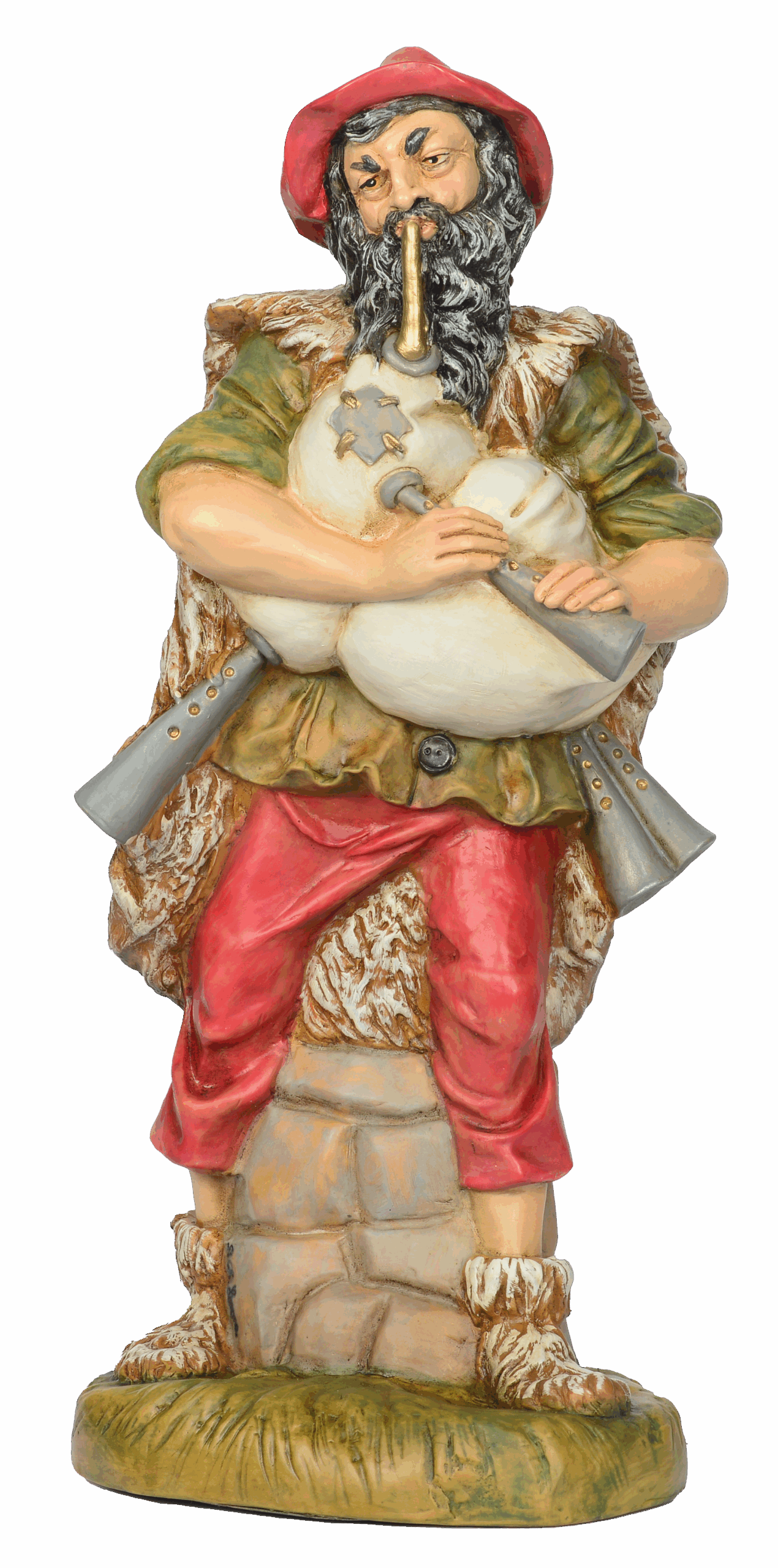 Zampognaro in stile classico adatto al presepe di dimensioni 45 cm, dipinto a mano.